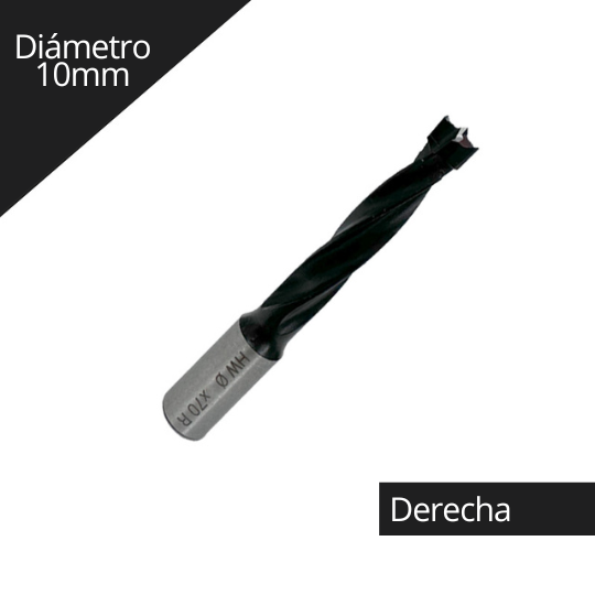 Broca para Madera Plana /Ciega 10x70mm derecha