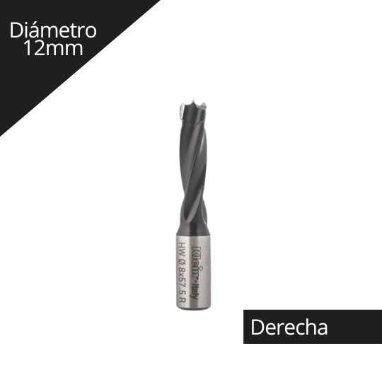 Fresa para madera Helicoidal terminación diámetro 12mm