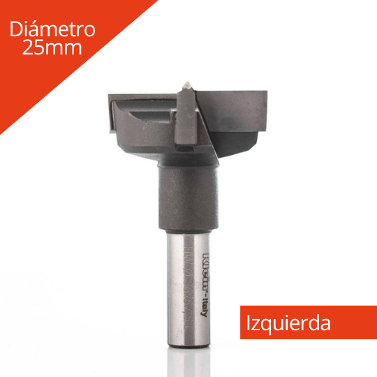 Broca de herraje para madera de 25 mm izquierda, ideal para perforaciones precisas en bisagras y herrajes. Ofrece cortes limpios, alta durabilidad y excelente rendimiento en trabajos profesionales.