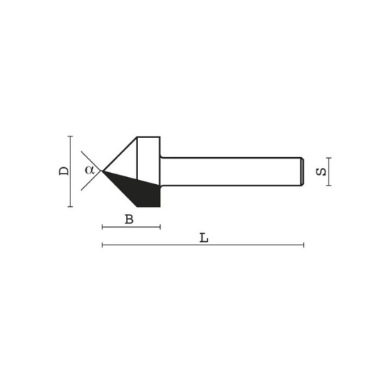 Fresa en "V" para madera de 9,5 mm de diámetro, ideal para grabados, ranuras y cortes decorativos en madera, MDF y tableros. Fabricada en metal duro para mayor precisión y durabilidad en trabajos de carpintería y mueblería