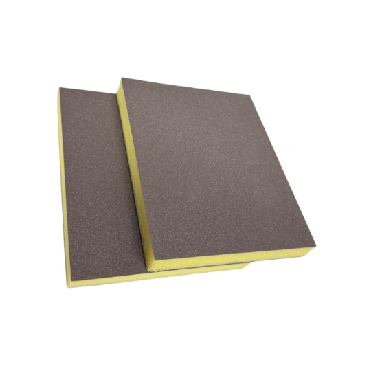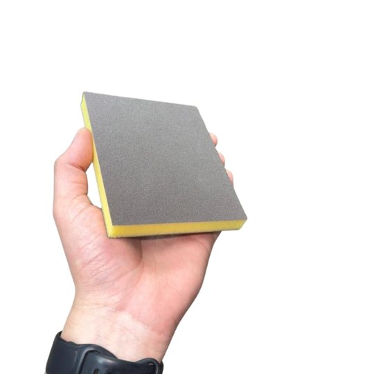 Lija Esponja Doble Faz Fine Amarilla Blanca, flexible y duradera, ideal para acabados delicados en superficies curvas y planas. Reutilizable y lavable, perfecta para madera, pintura y metales.