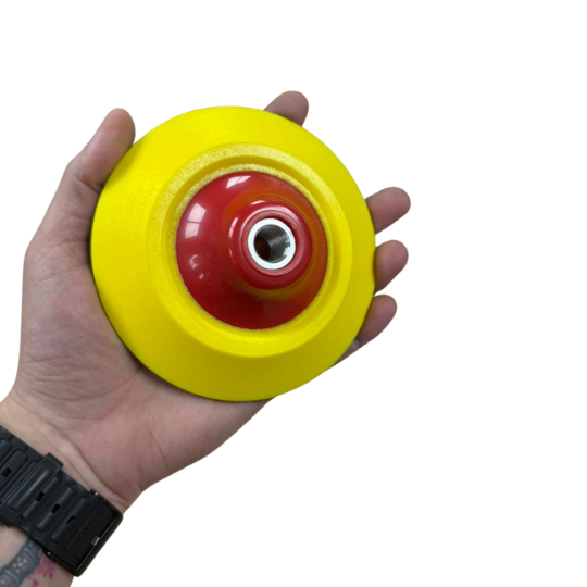 Plato para Esmeril, Pulidora de 5" (125 mm) con rosca M14, ideal para fijar bonetes de lana o espuma. Ofrece firmeza, estabilidad y excelente rendimiento en tareas de pulido, abrillantado y terminación de superficies.