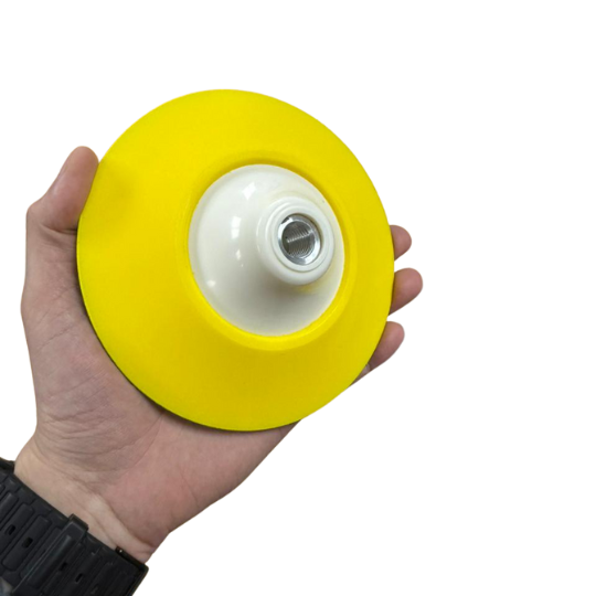 Plato para Esmeril, Pulidora de 6" (150 mm) con rosca M14, diseñado para fijar bonetes de lana o espuma. Ofrece excelente estabilidad y durabilidad para trabajos de pulido, encerado y abrillantado en superficies metálicas o pintadas.