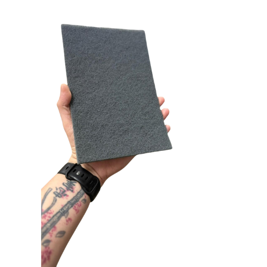 Almohadilla abrasiva no tejida fabricada con fibras de alta resistencia impregnadas con óxido de aluminio, diseñada para tareas de limpieza, matizado y preparación de superficies antes del pintado o recubrimiento. Su estructura abierta evita el embozamiento, permitiendo un trabajo continuo y eficiente.